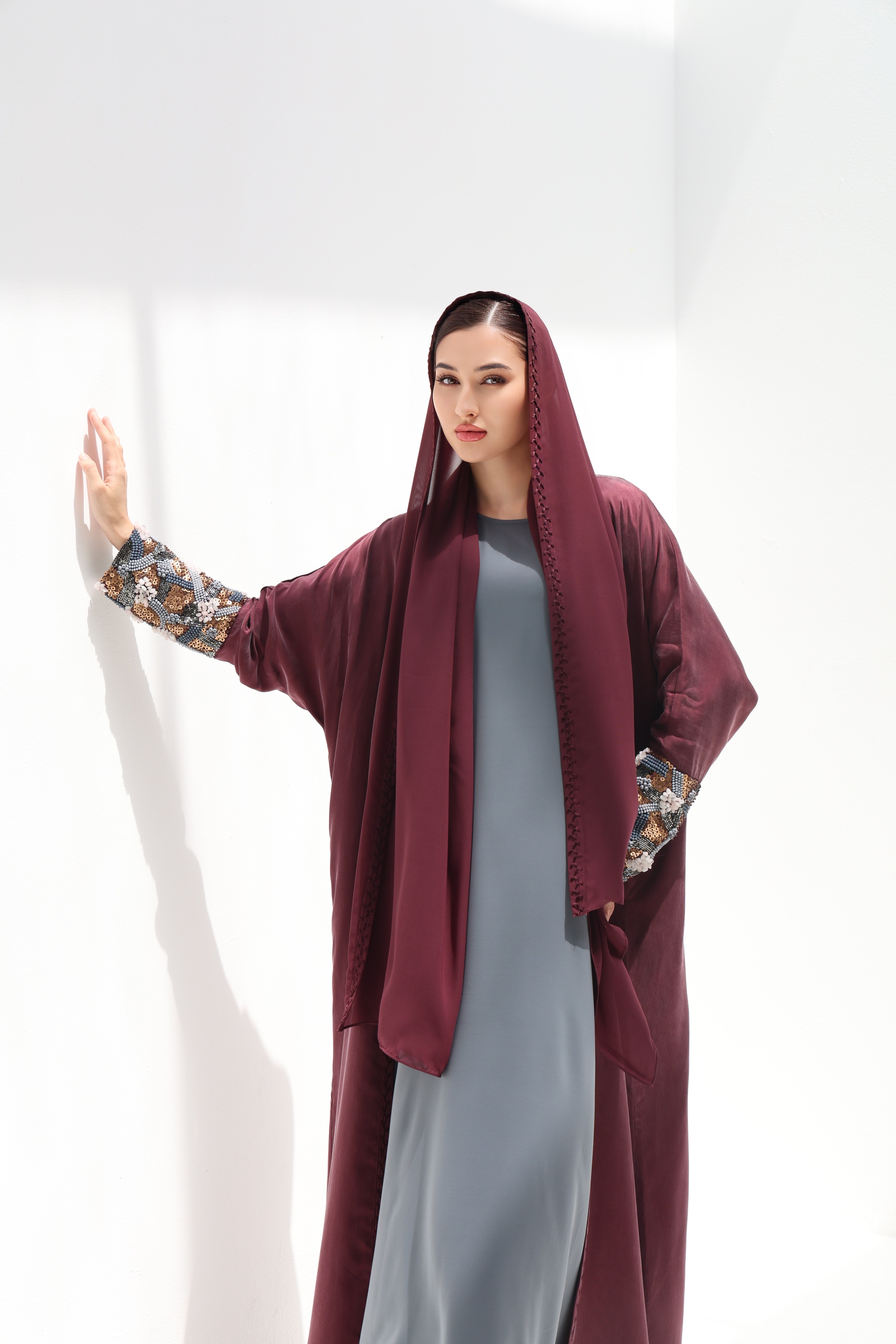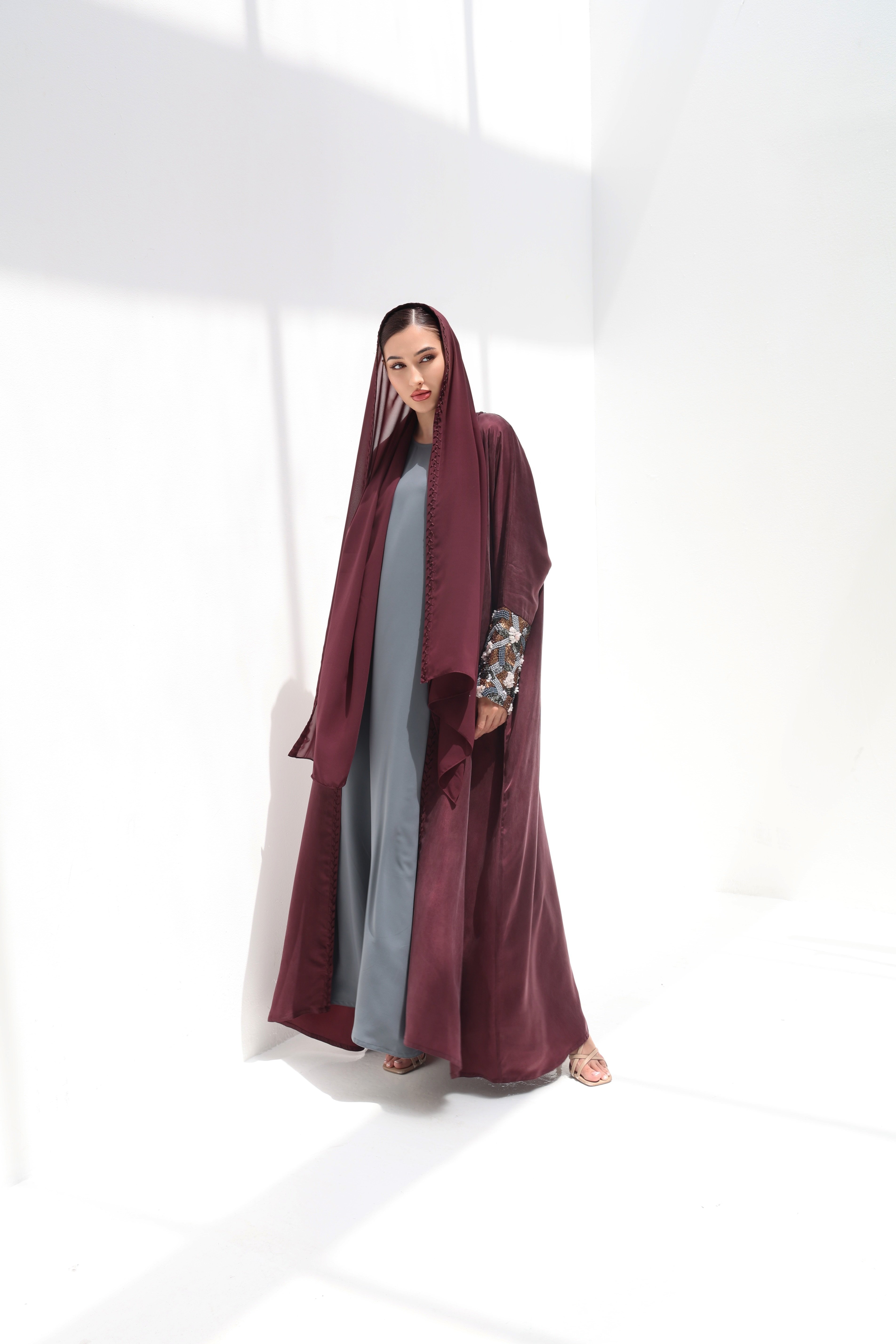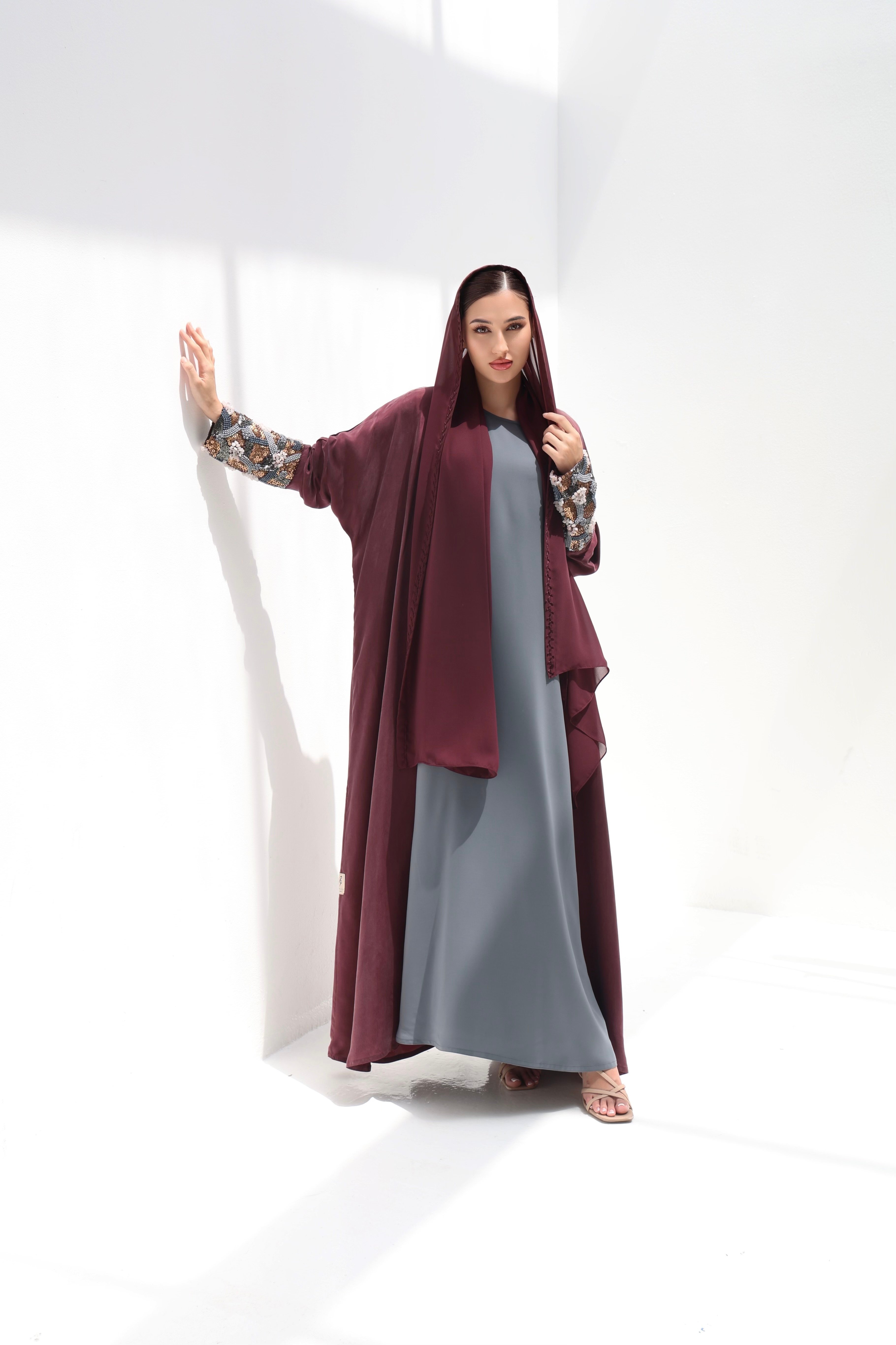عباية بشك ثقيل في الاكمام وتطريز يدوي من الامام