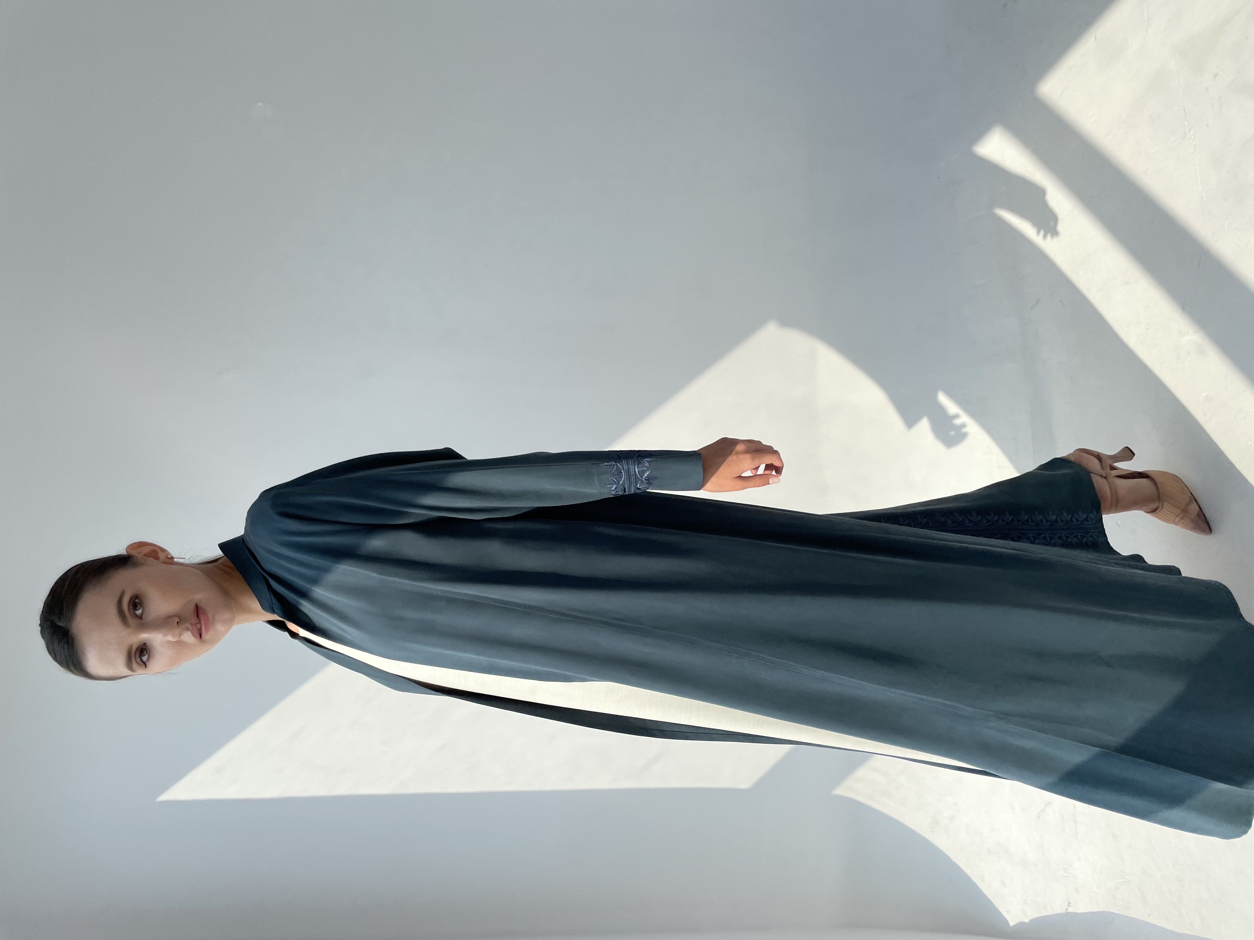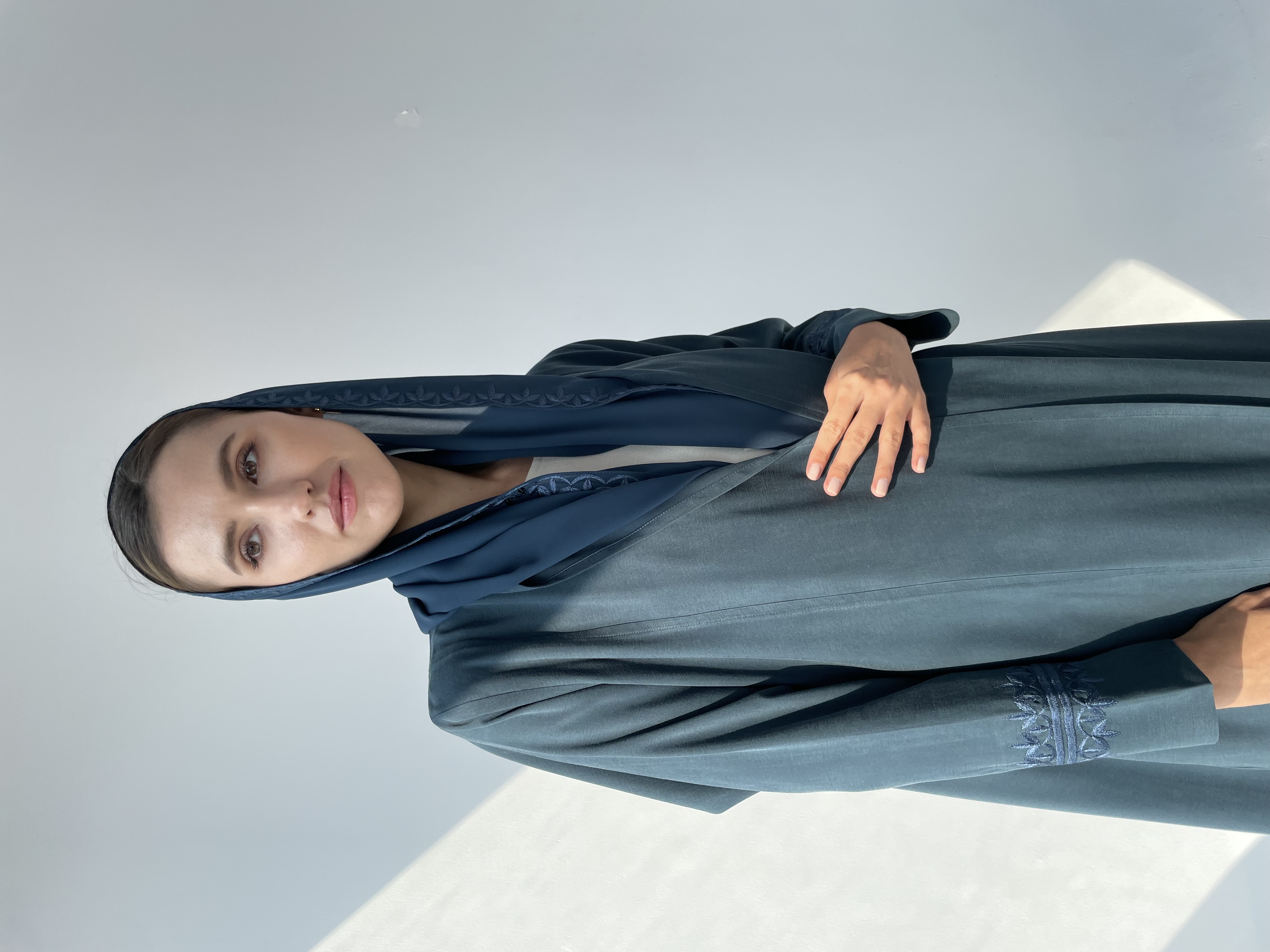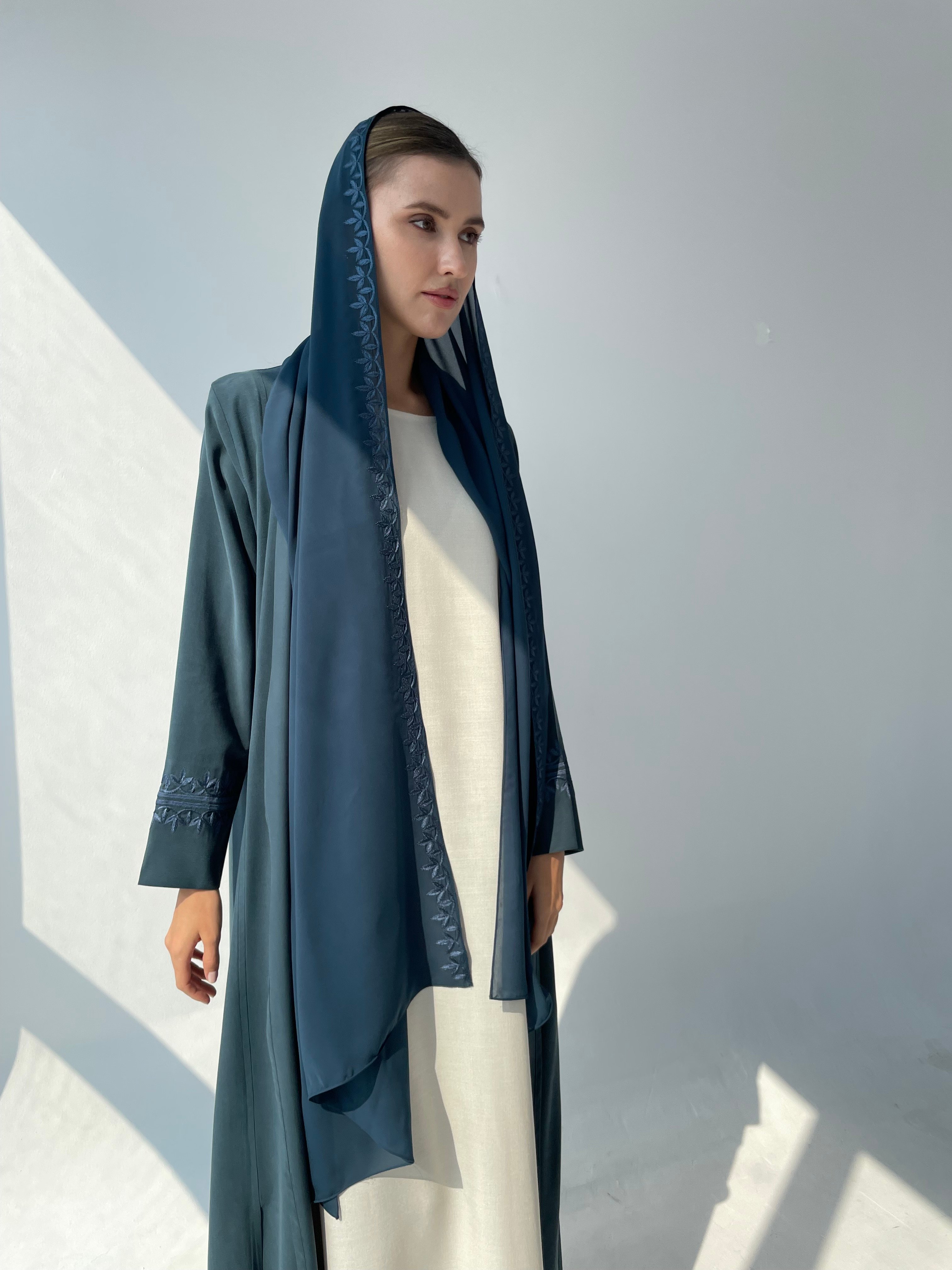 عباية بتطريز يدوي من الخلف و الاكمام + طرحة مطرزة