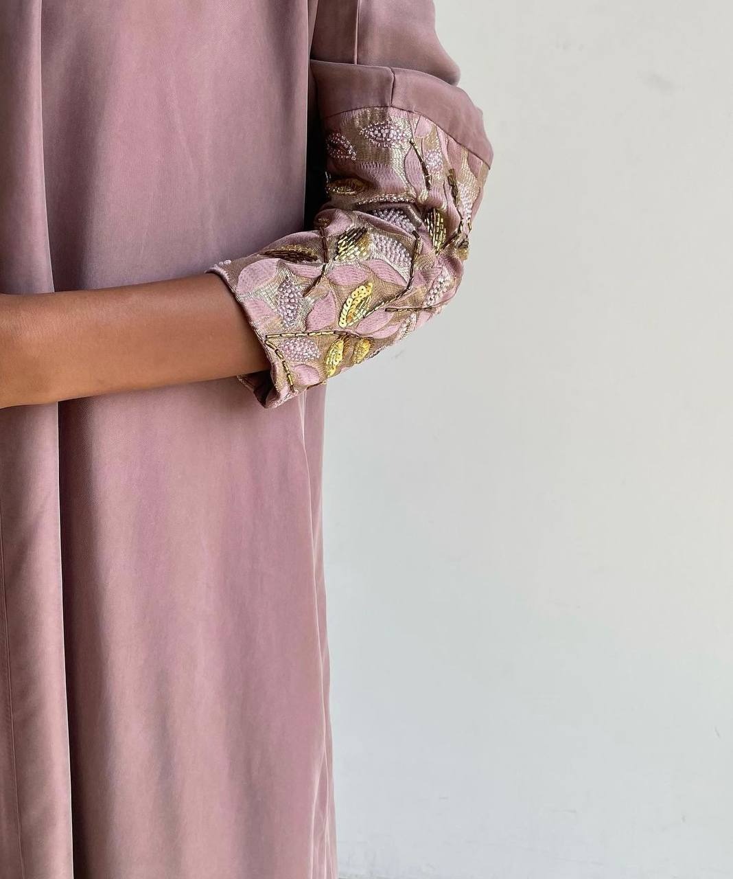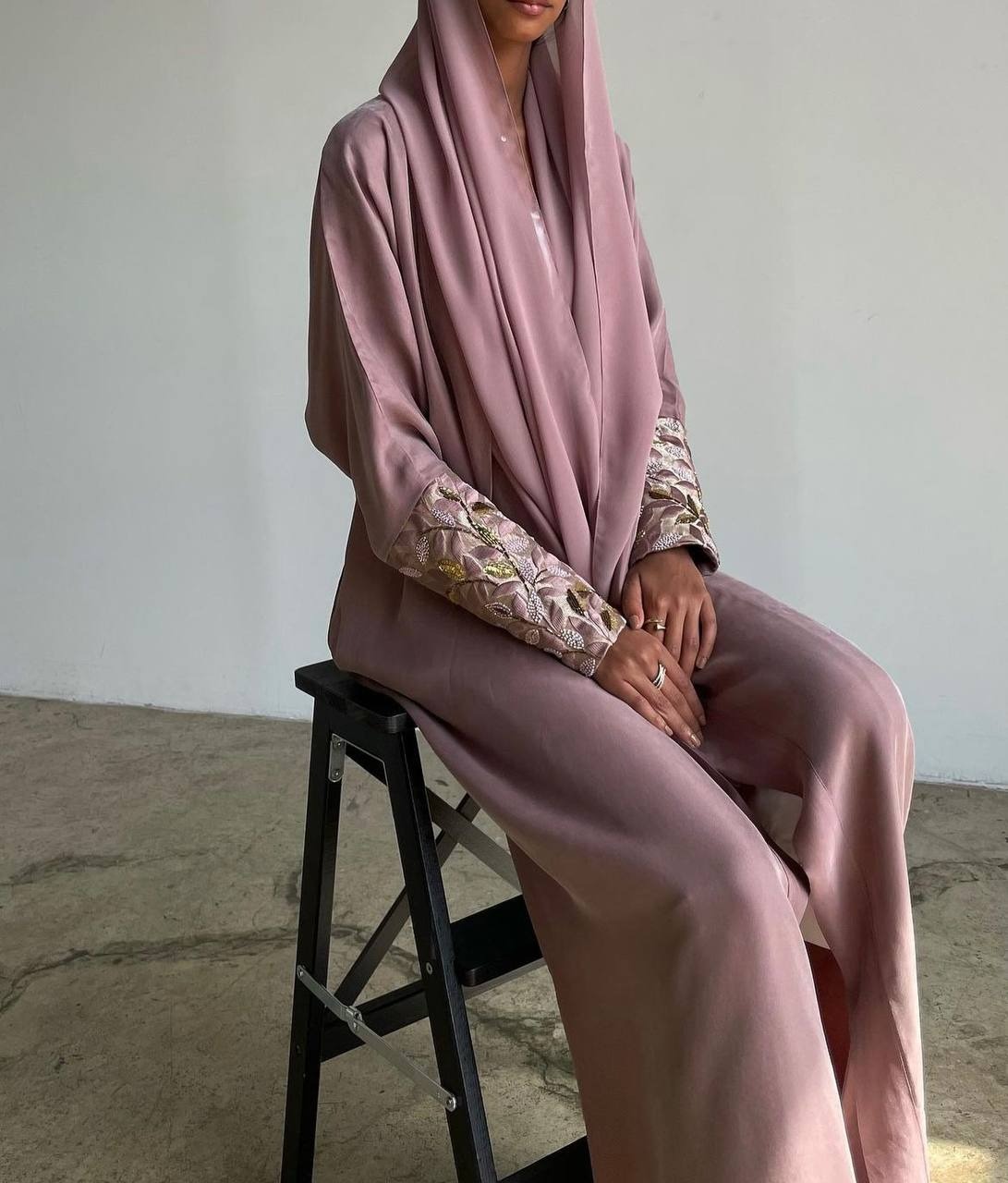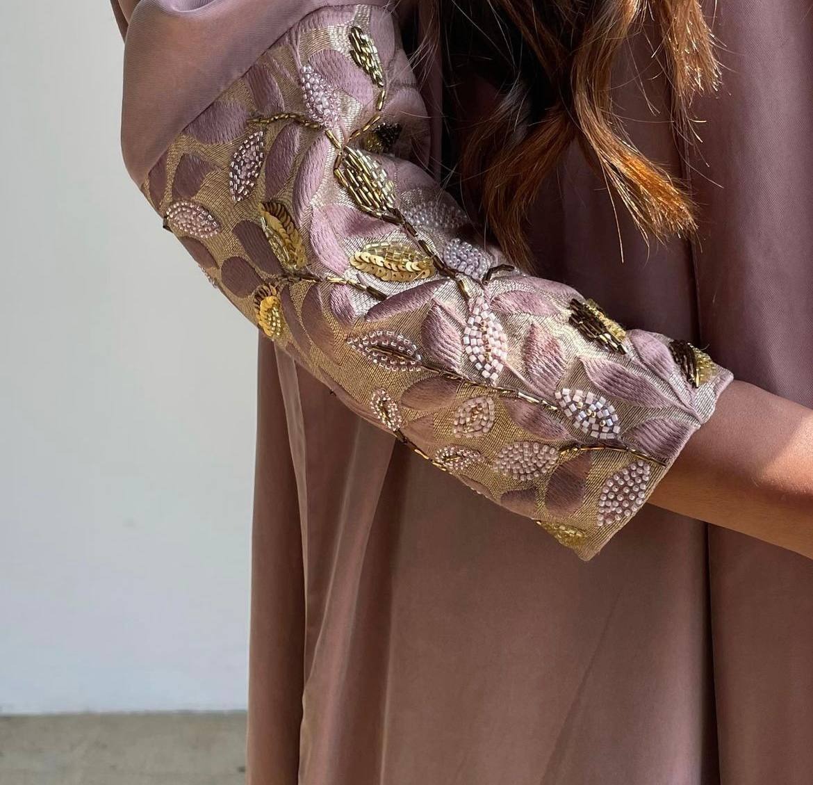 عباية بشك يدوي على الاكمام بقطعة من التفته الفرنسي