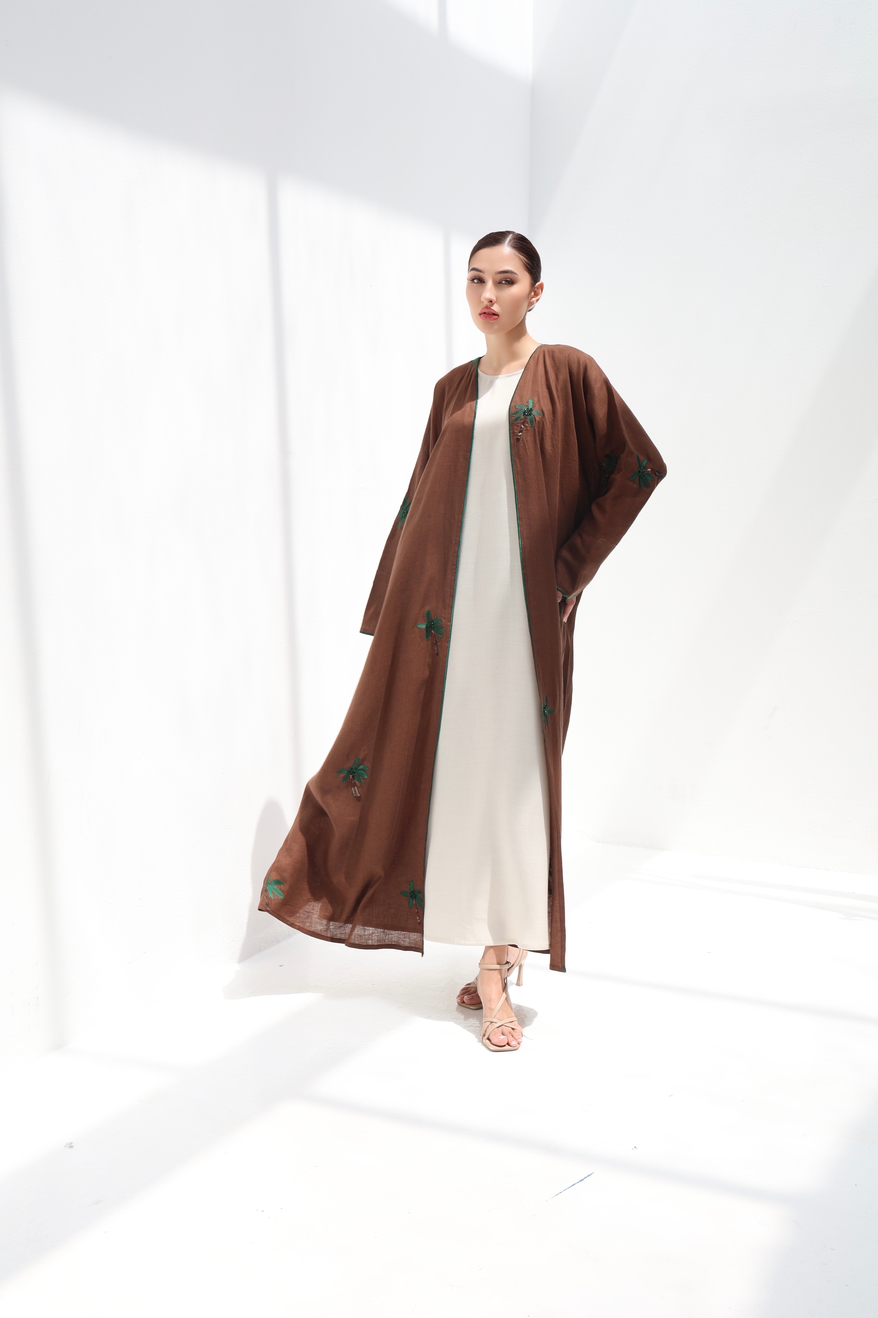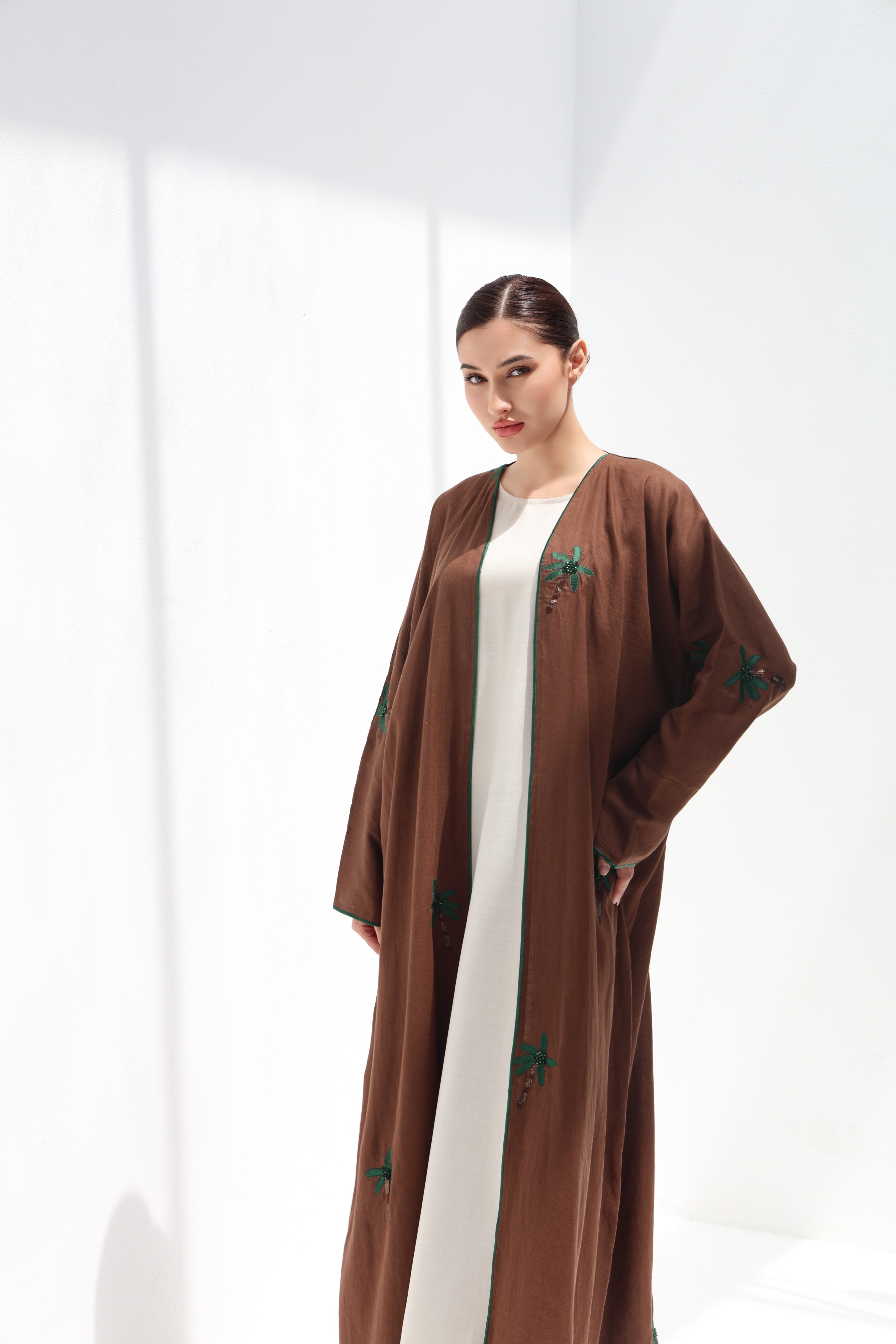 عباية بشك وتطريز يدوي موزع على كامل العباية
