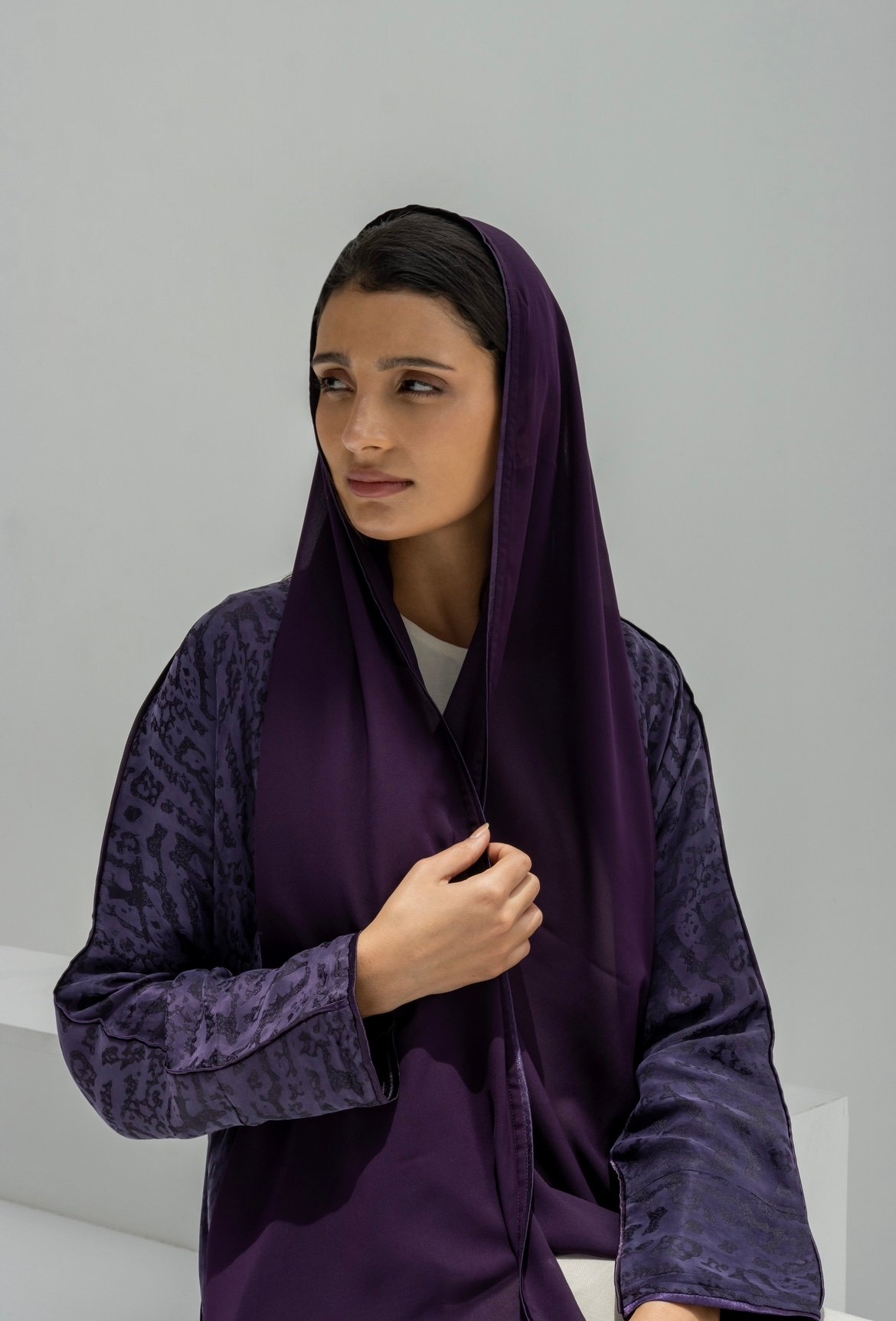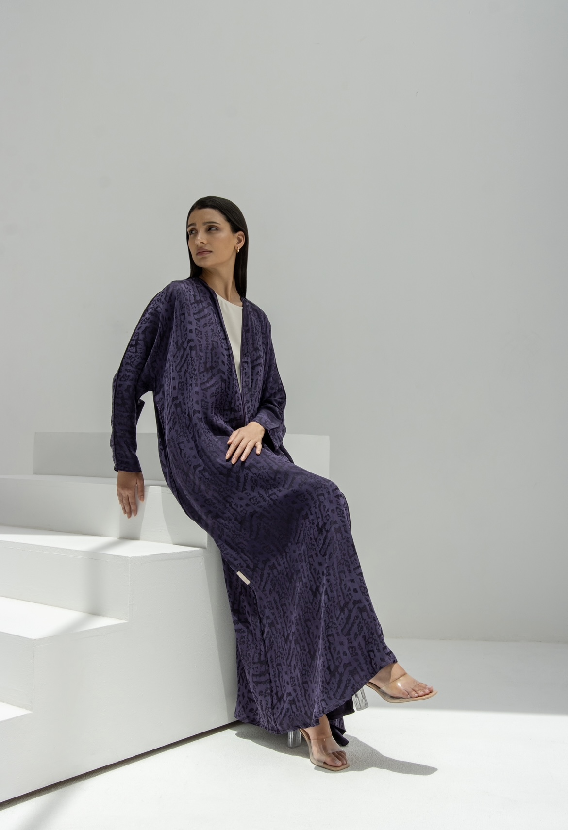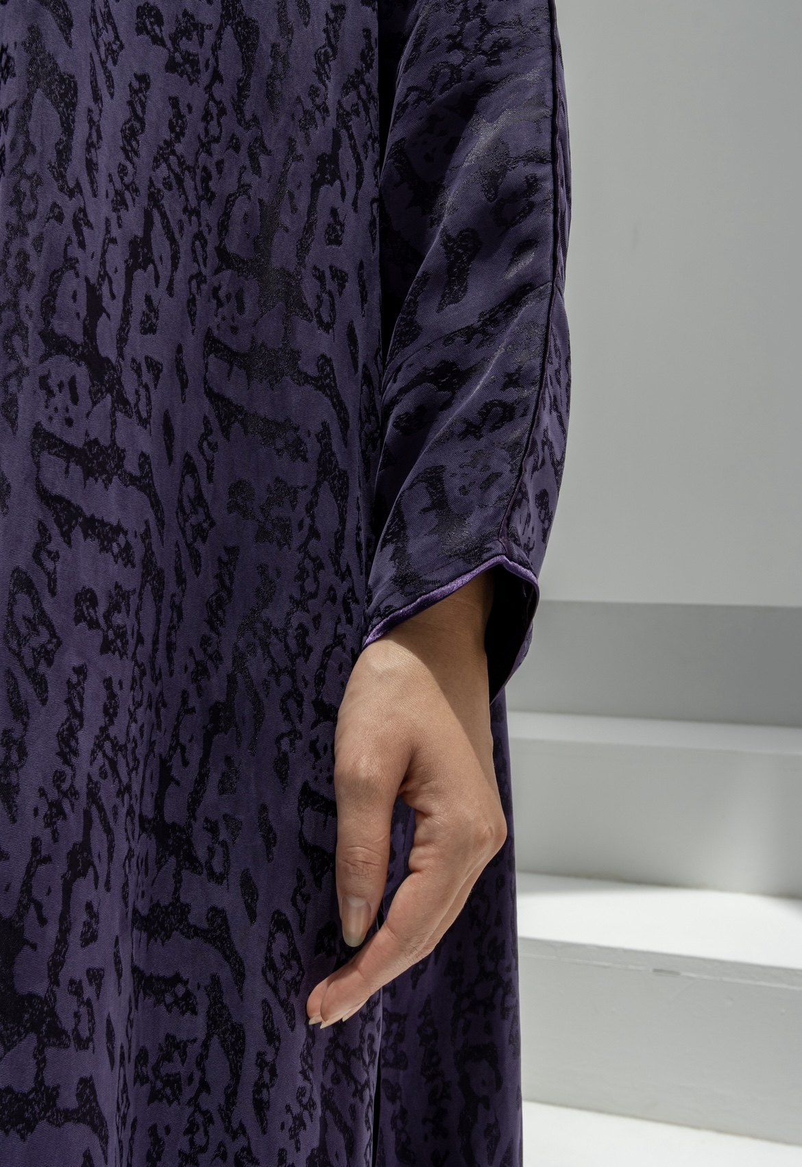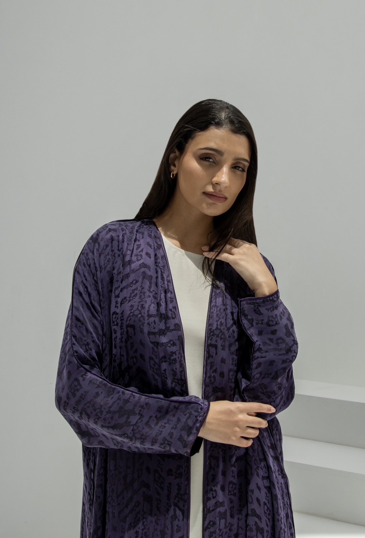 عباية حرير مشجر مع اطراف من الحرير السادة