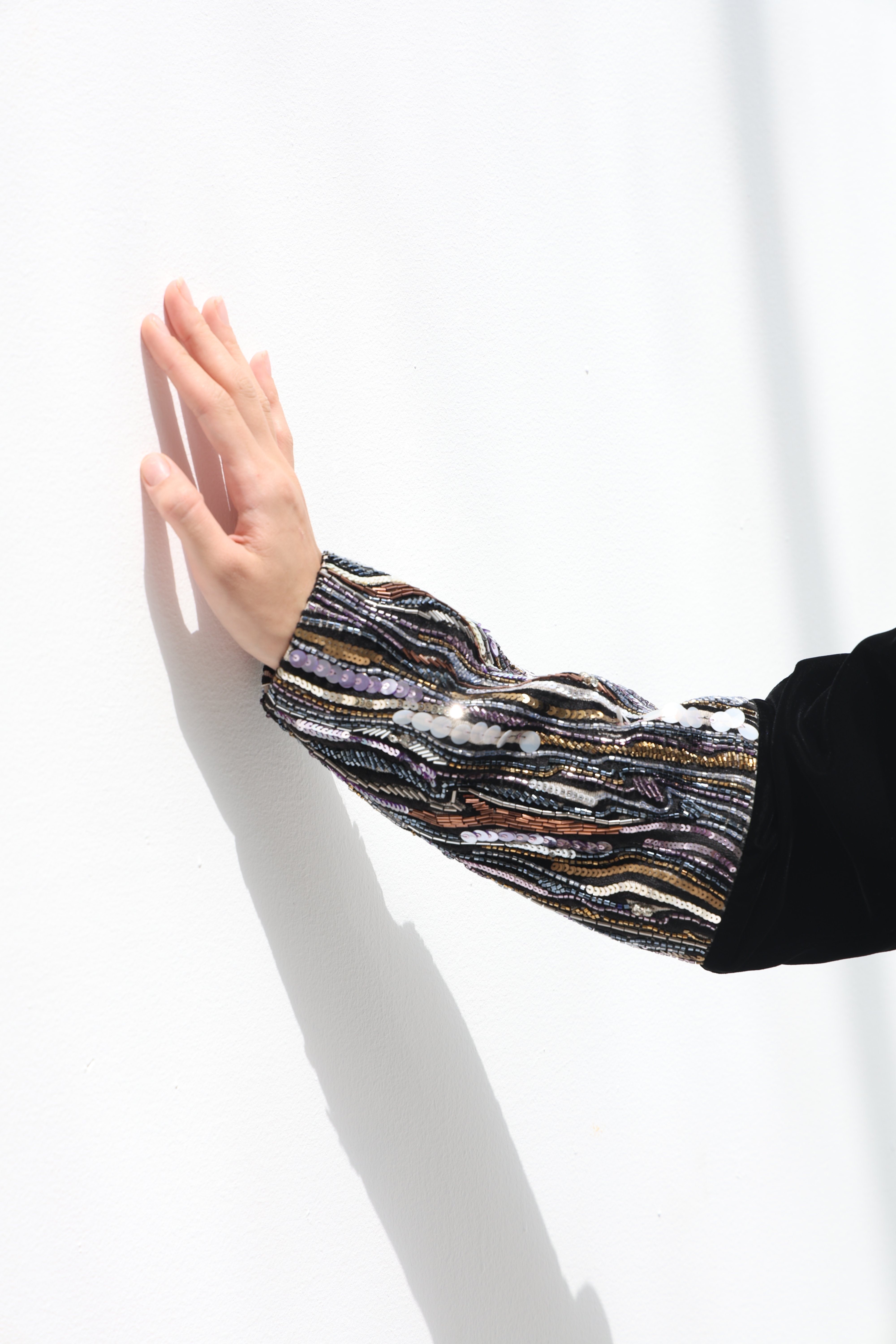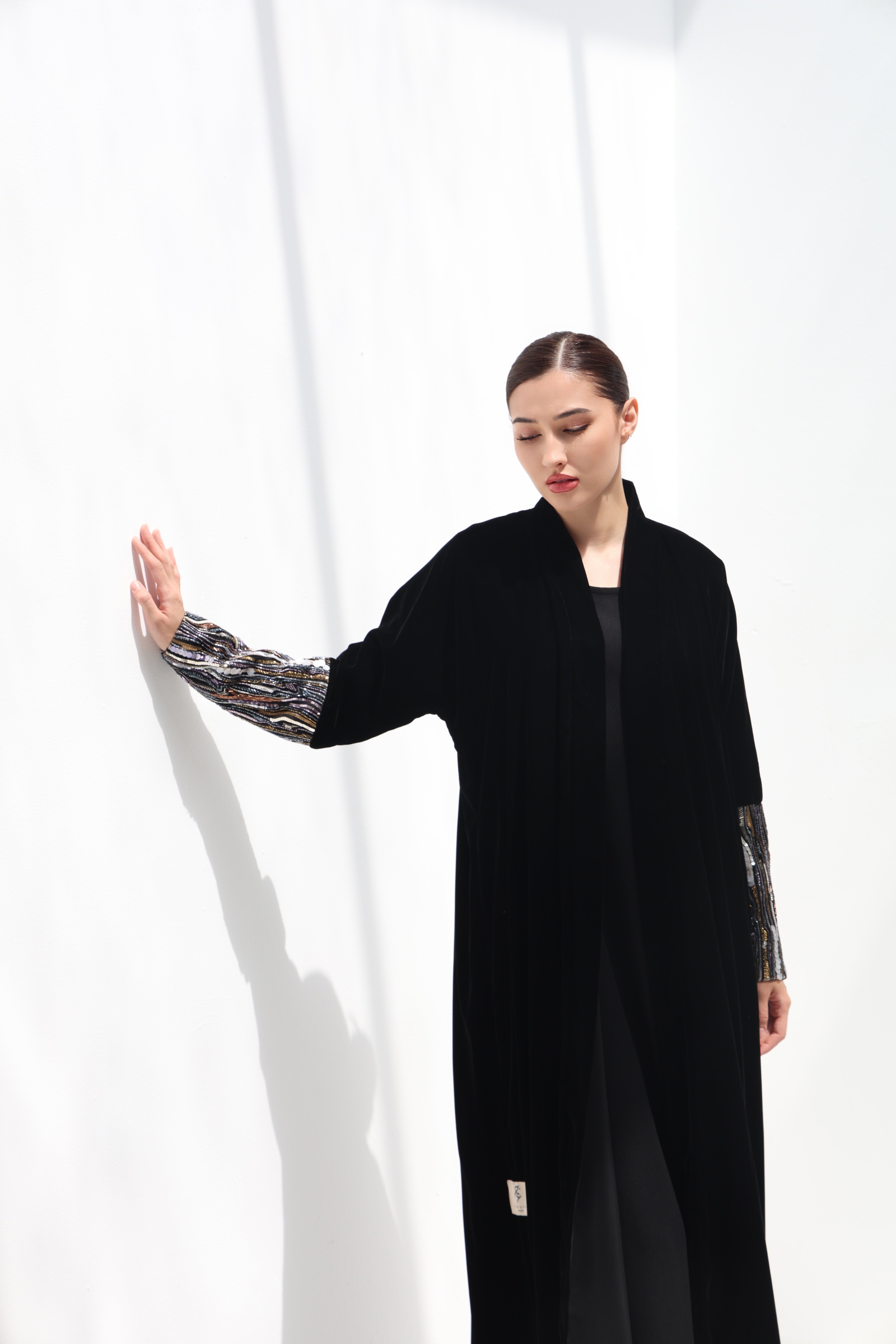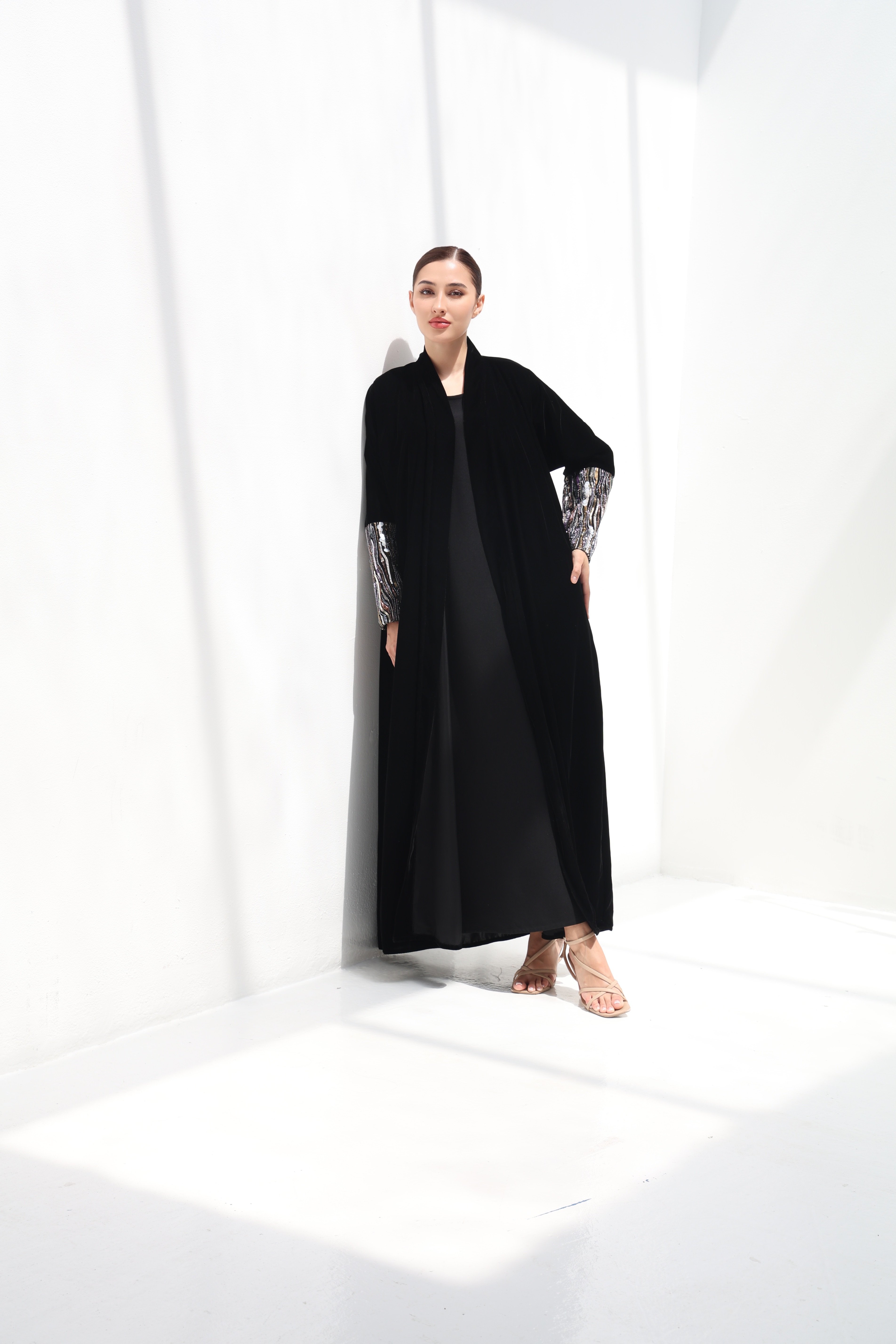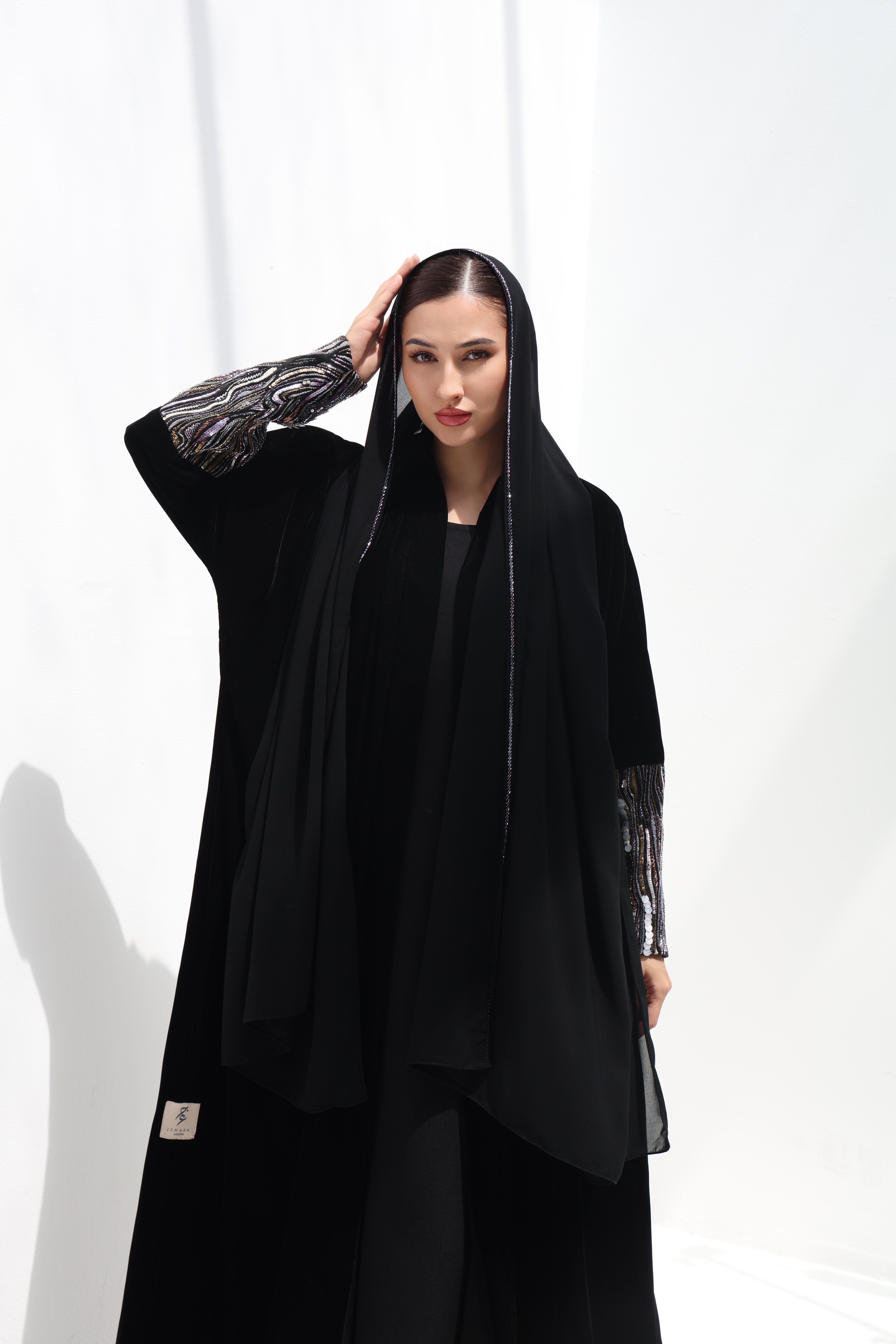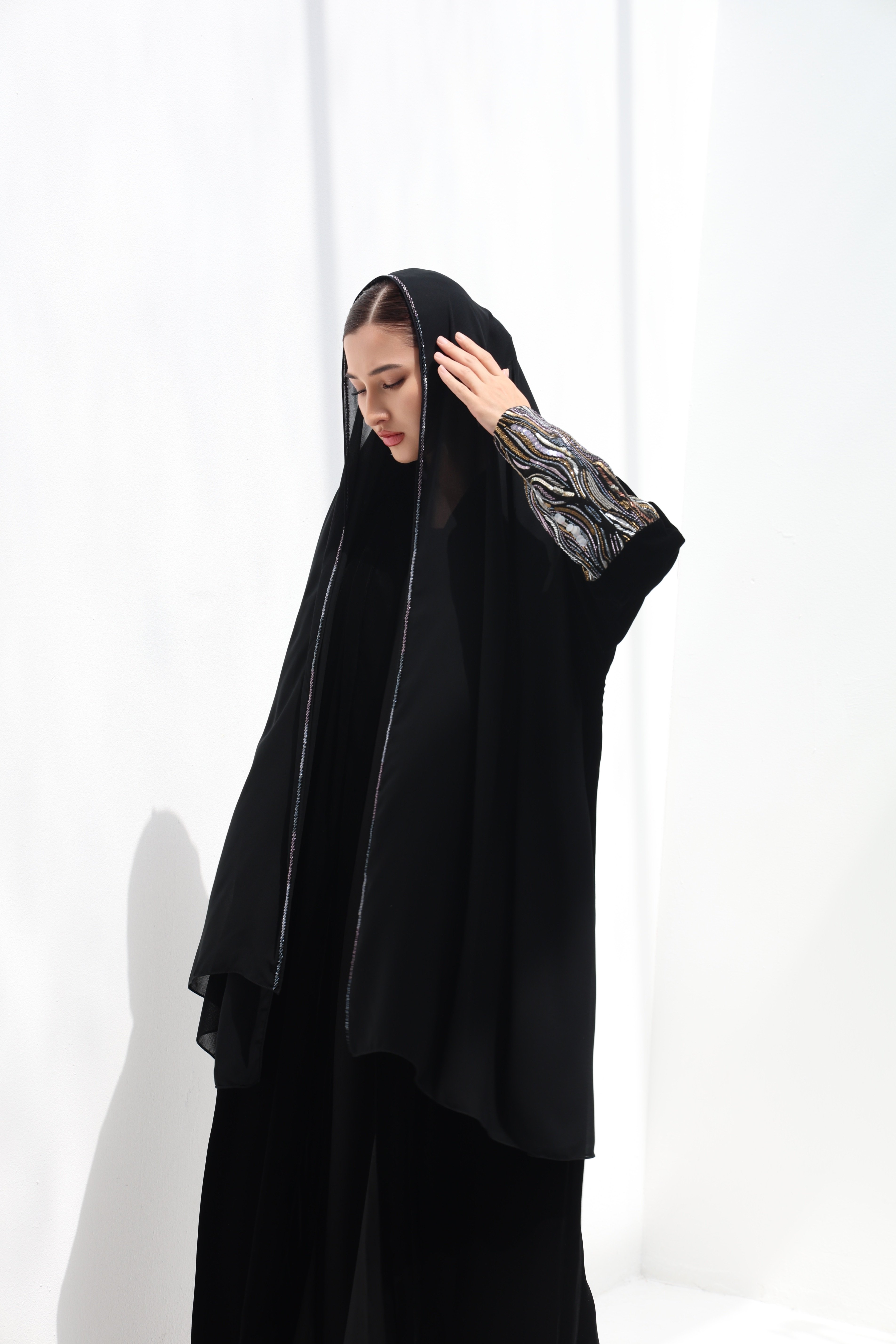 عباية بتطريز وشك يدوي على الاكمام + طرحة مطرزة