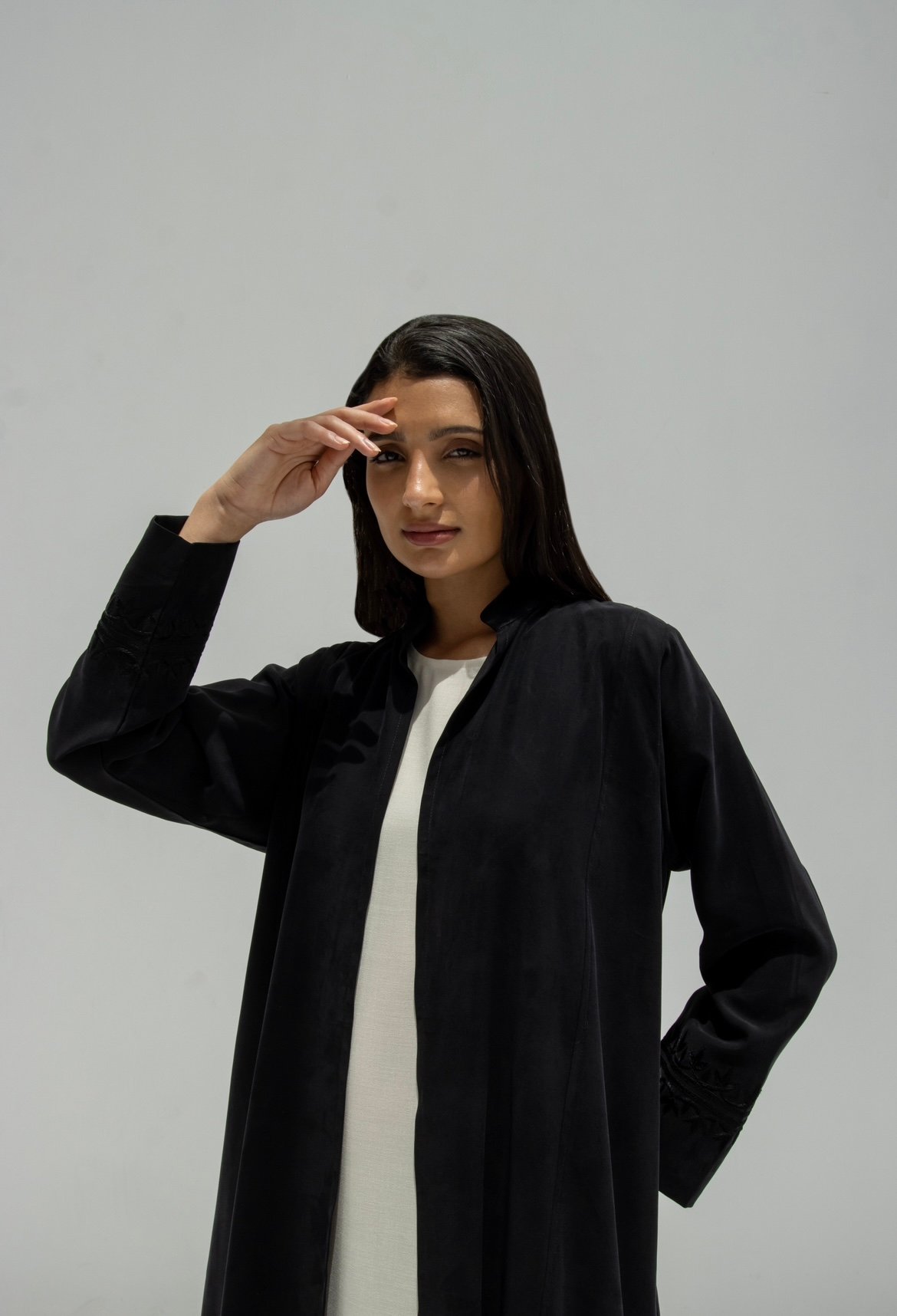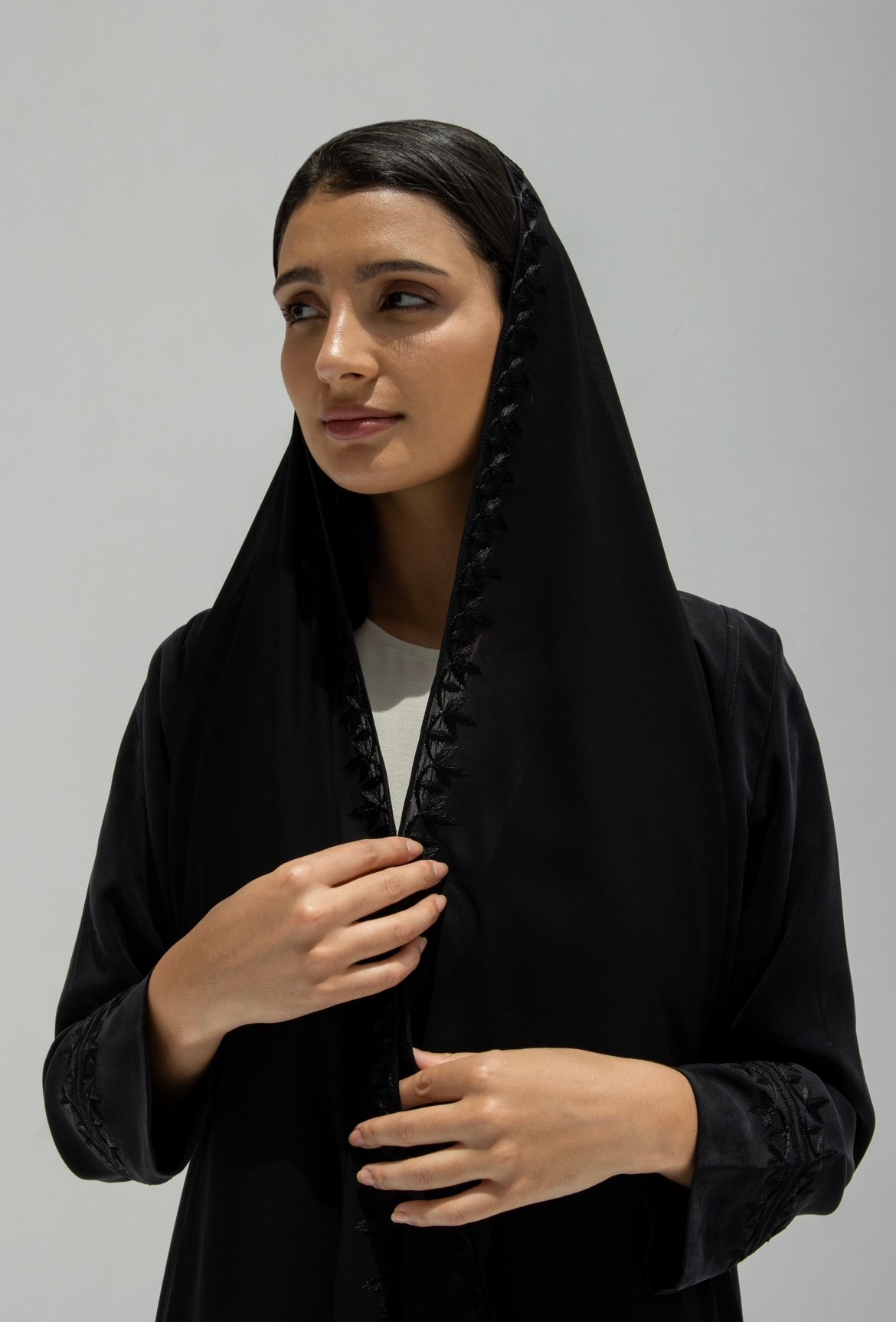 عباية بتطريز يدوي من الخلف و الاكمام + طرحة مطرزة