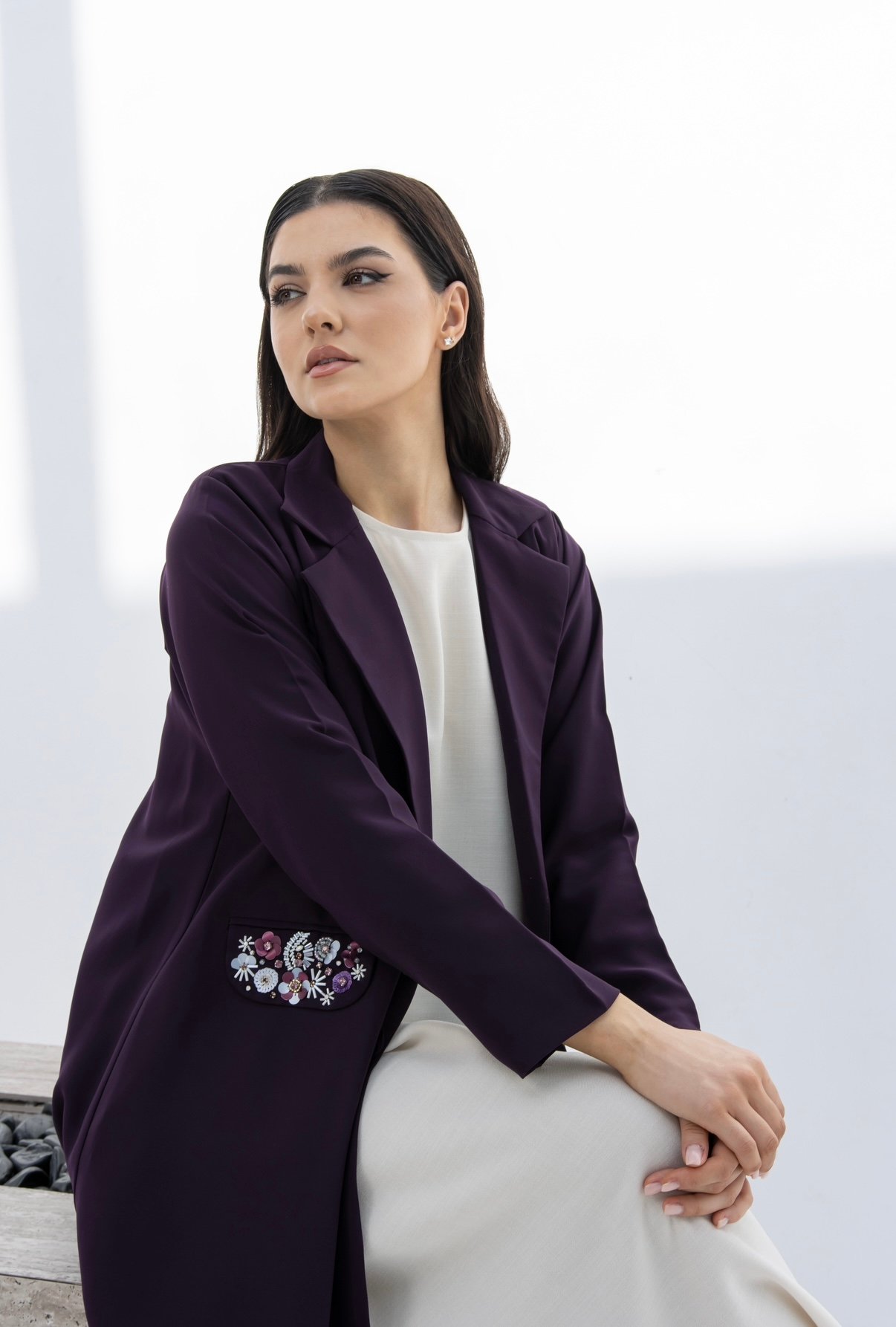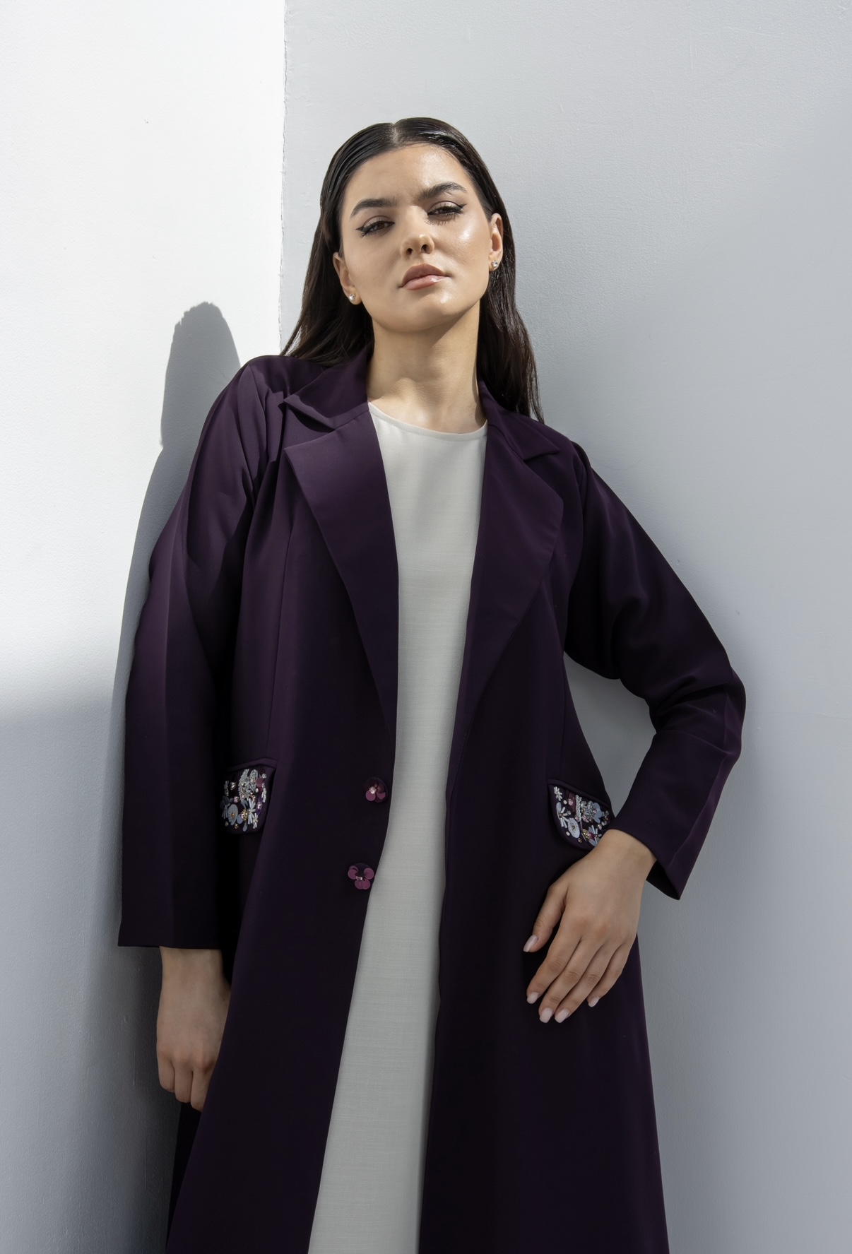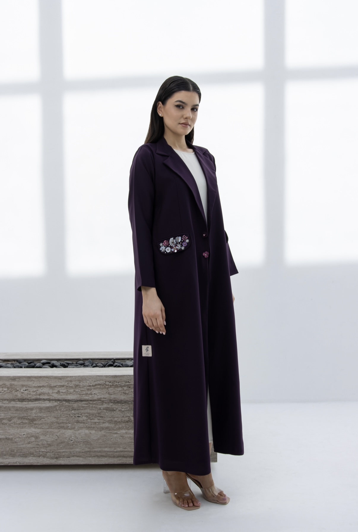 عباية رسمية بتطريز وشك يدوي على الجيوب + طرحة مطرزة