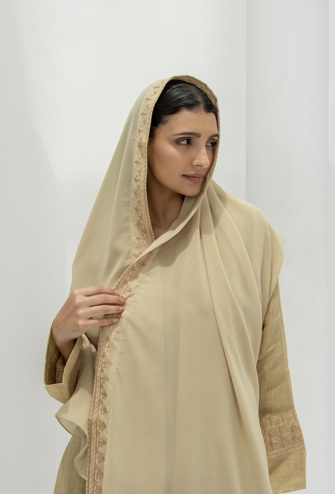 عباية بتطريز يدوي مبطنة بالكامل + طرحة مطرزة