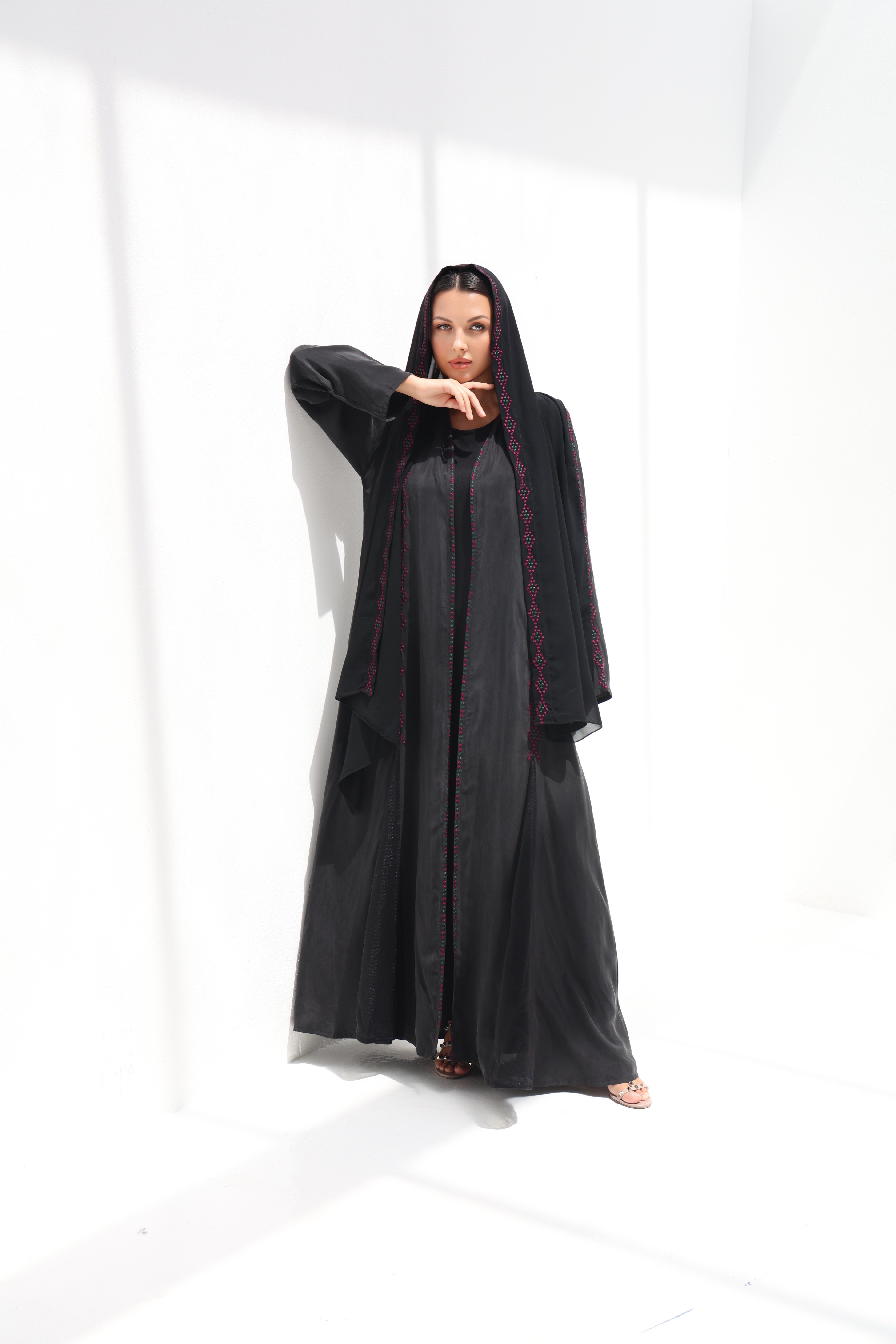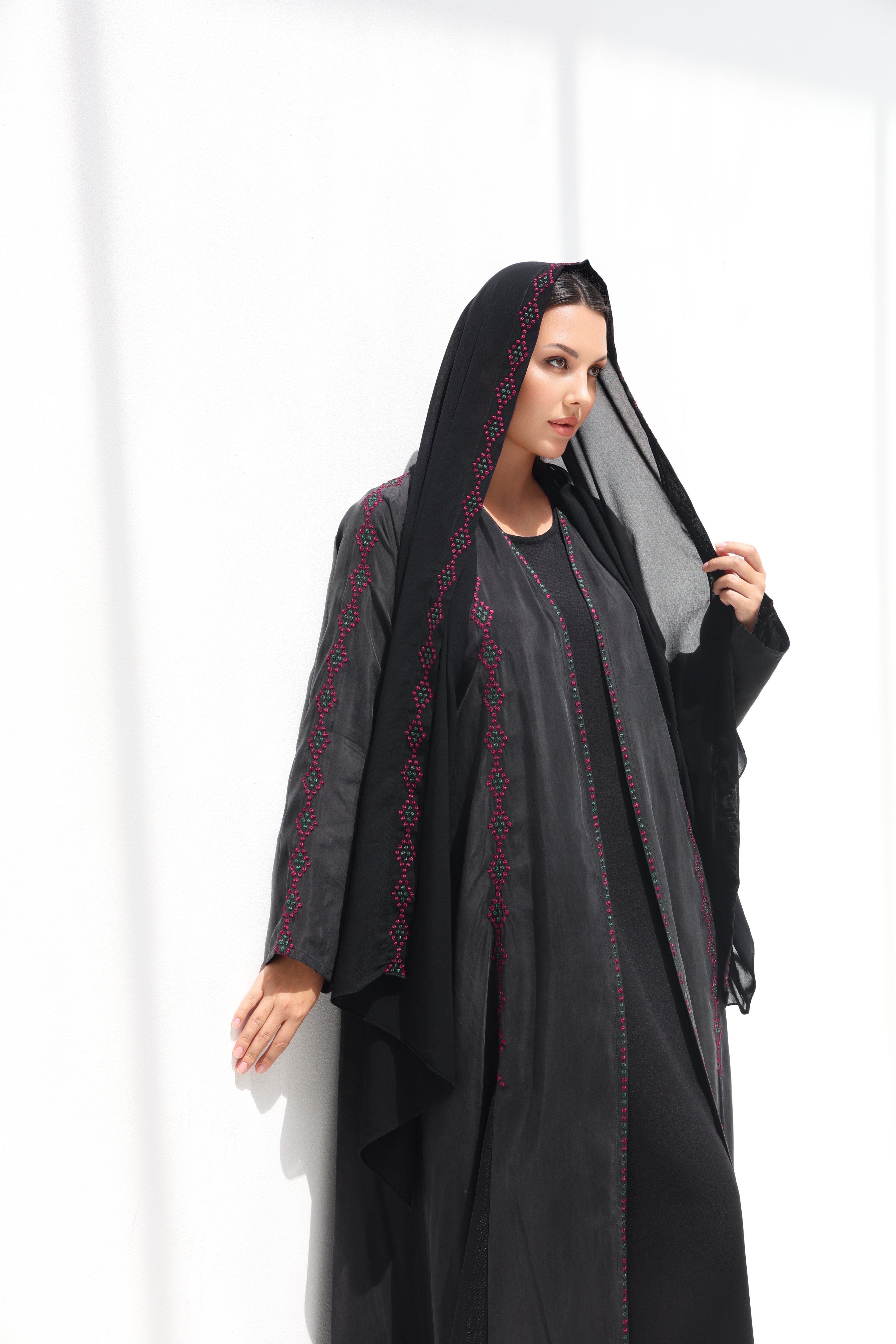 عباية بتطريز يدوي على كامل العباية و طرحة مطرزة من الطرف