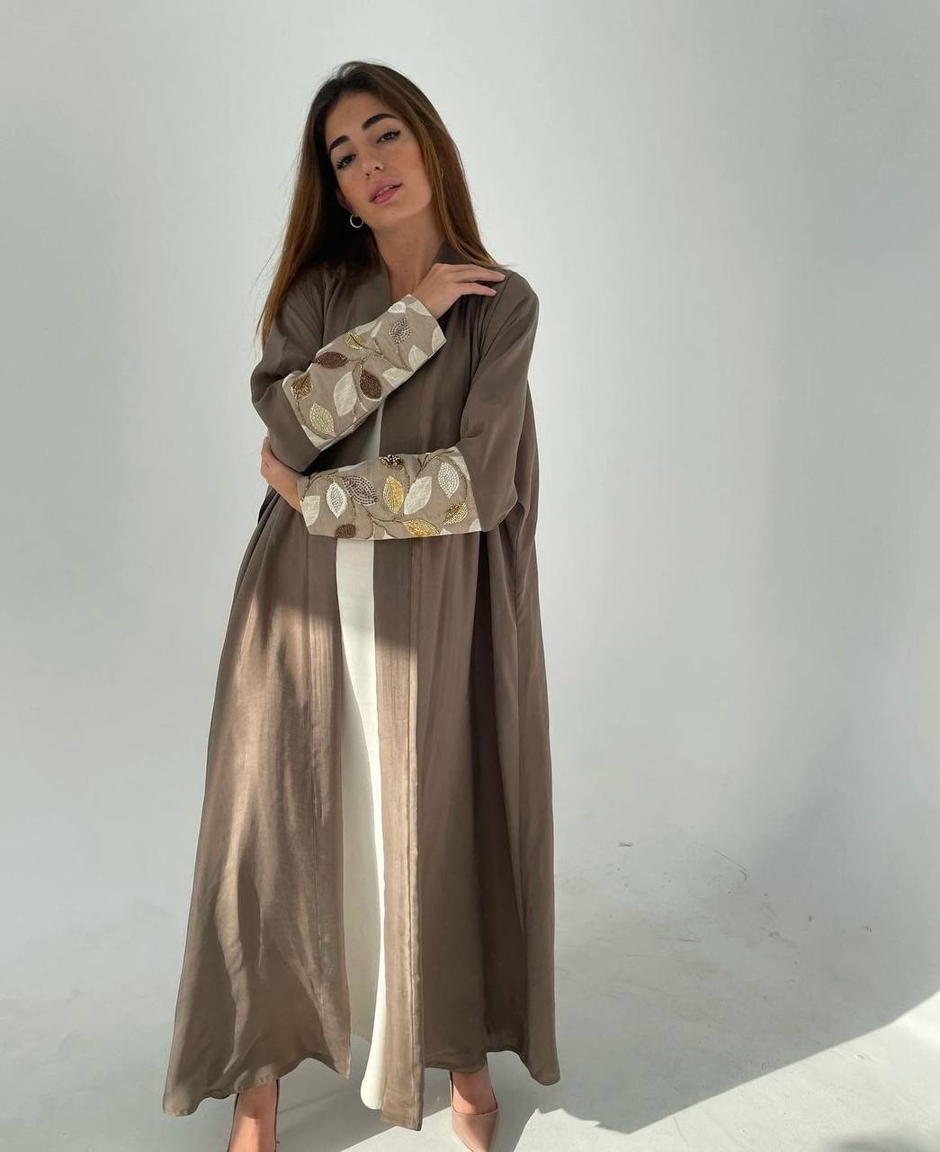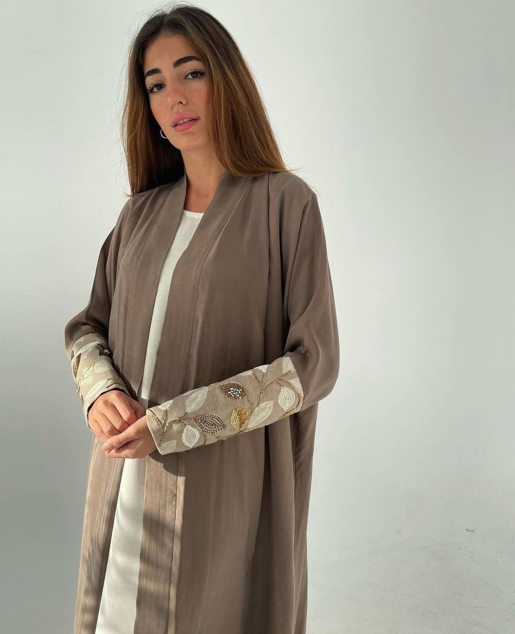 عباية بشك يدوي على الاكمام بقطعة من التفته الفرنسي