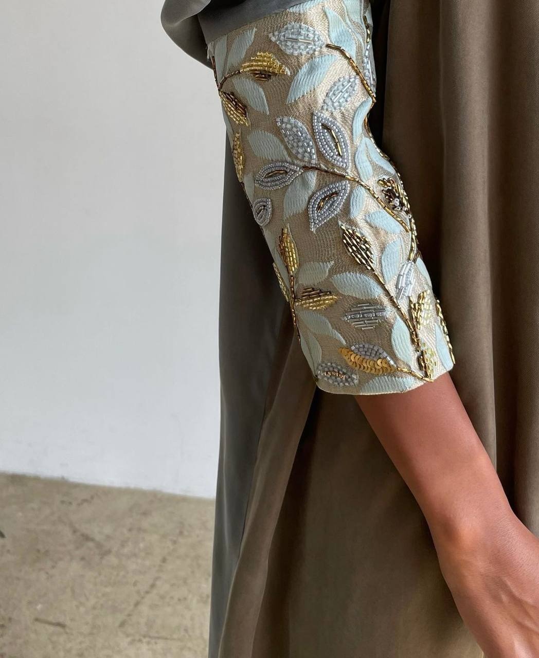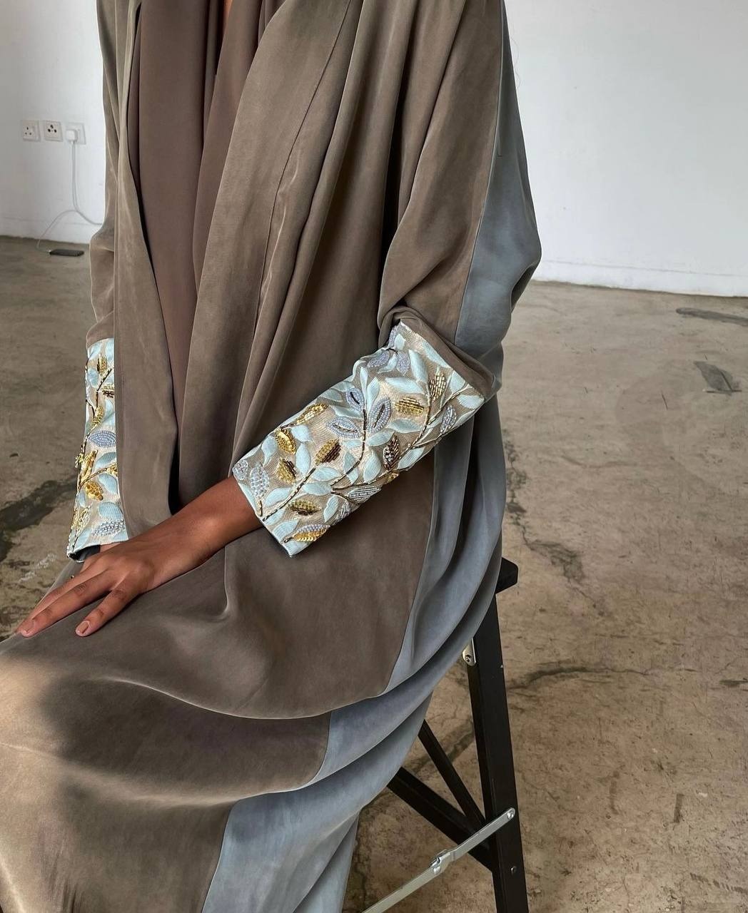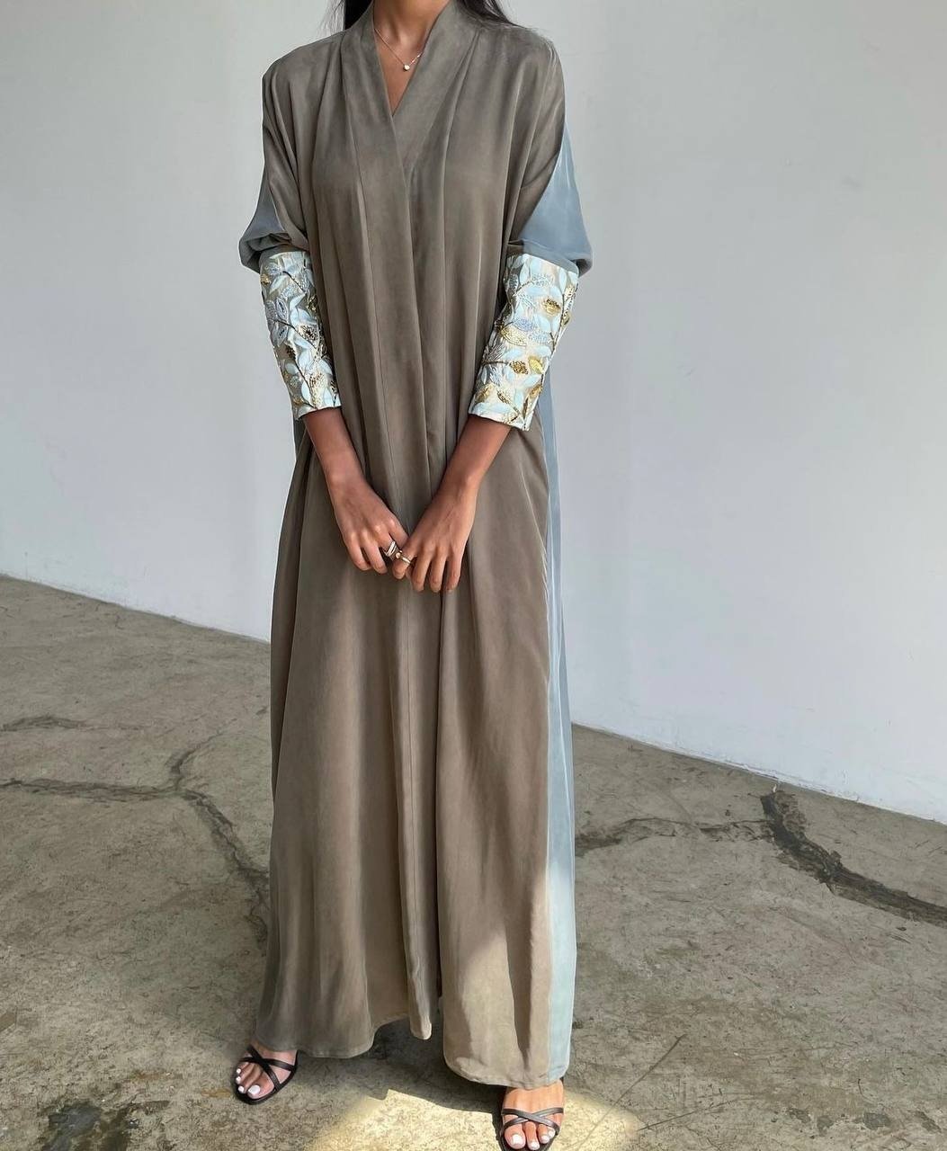 عباية بشك يدوي على الاكمام بقطعة من التفته الفرنسي